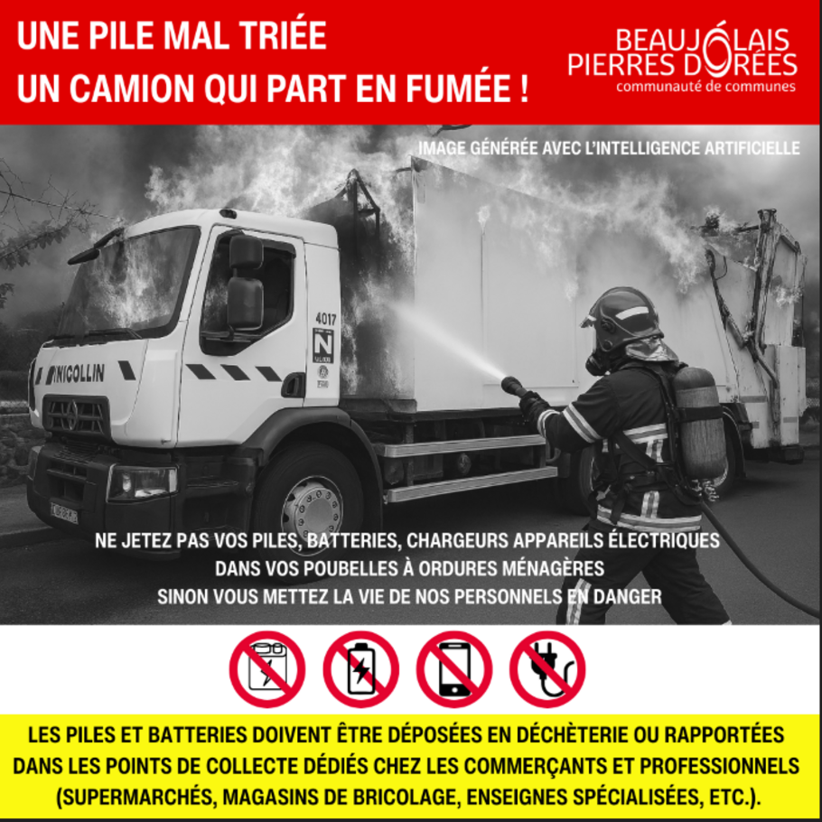𝗟𝗔 𝗥𝗔𝗜𝗦𝗢𝗡 𝗣𝗥𝗢𝗕𝗔𝗕𝗟𝗘 𝗗𝗘 𝗖𝗘𝗧 𝗜𝗡𝗖𝗘𝗡𝗗𝗜𝗘 : une ou des piles ou batteries jetées dans une poubelle à ordures ménagères