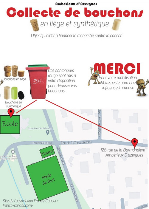 Une collecte de bouchons en liège et en synthétique (vin, champagne, cidre...) a été mise en place à Ambérieux.