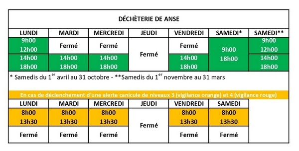 En cas de canicule, les horaires peuvent changer.